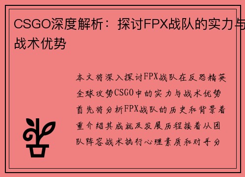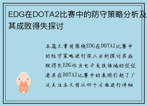 本文将对V5战队在DOTA2比赛中的压制表现与战术得失进行深入分析。首先,我们将探讨V5战队的整体战术布局,包括其核心阵容和选择的英雄组合;其次,分析团队配合及沟通的重要性,以及如何通过良好的团队协作来实现有效的压制;接下来,将评估V5在比赛中所展现出的优势及不足之处,以便总结出成功与失败的关键因素;最后,针对这些分析结果,我们将提出一些改进建议,以帮助V5战队在未来的比赛中取得更佳成绩。整篇文章...